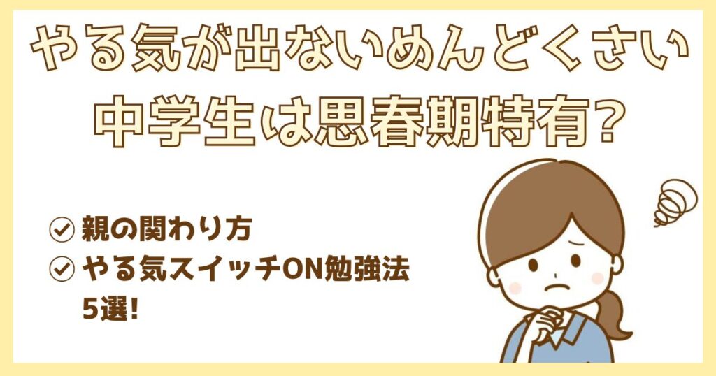 やる気が出ないめんどくさい中学生は思春期特有?親の関わりでやる気スイッチON勉強法5選!