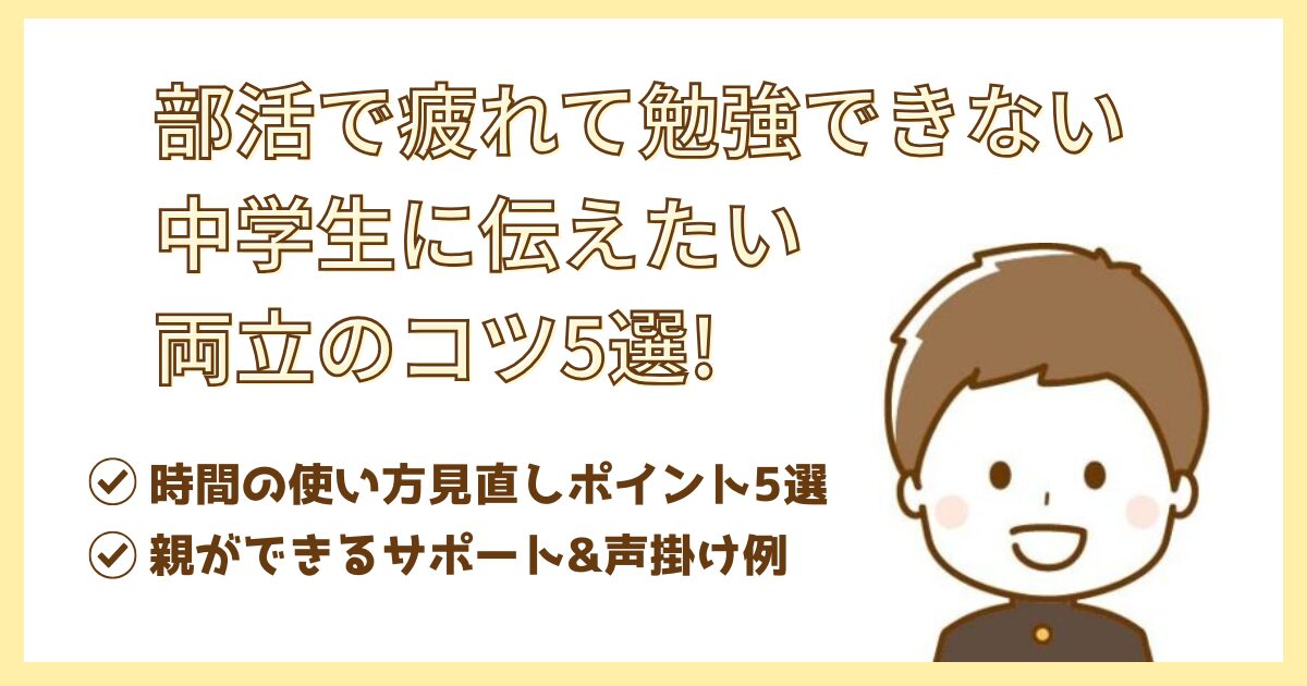 部活で毎日疲れてヘトヘトになるほど努力できるお子さんなら、コツや効率の良い時間の使い方を知れば両立できるはずです!