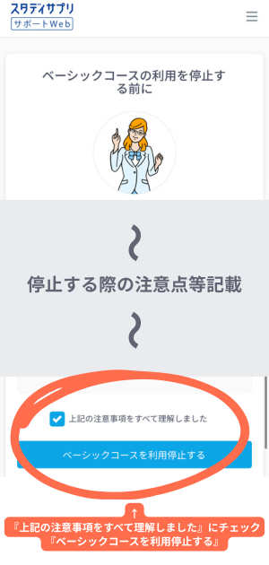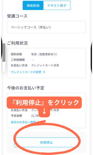 『ベーシックコースを利用停止する』をクリック